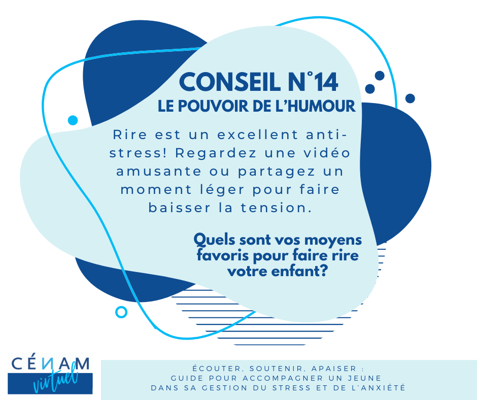 Rire est un excellent anti-stress! Regardez une vidéo amusante ou partagez un moment léger pour faire baisser la tension.